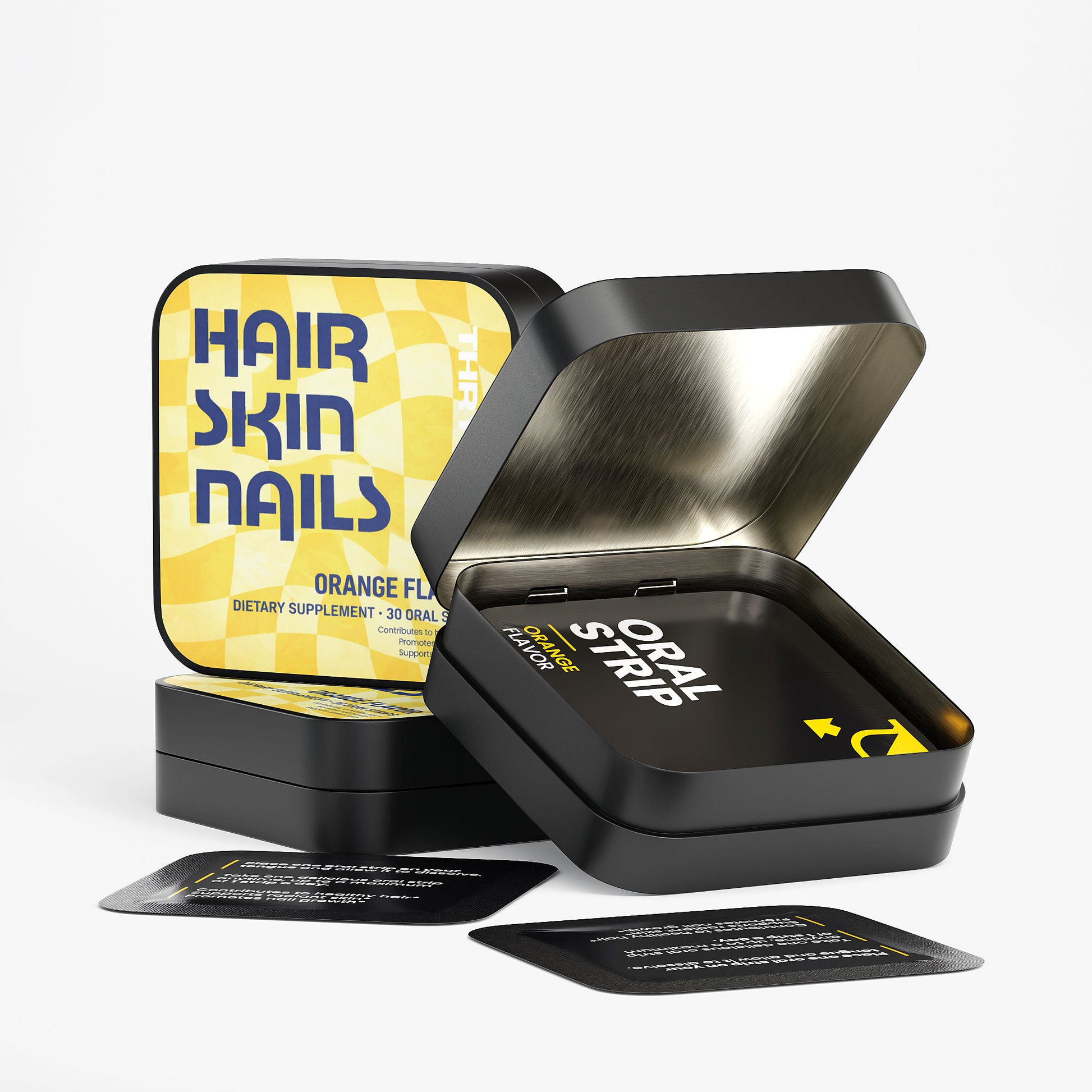 Nourish your natural beauty from within with our THRYV Hair, Skin and Nails Strips — a convenient, on-the-go supplement designed to support normal hair strength, skin vitality, and nail health. These quick-dissolving, orange-flavored oral strips provide key nutrients to support your hair, skin, and nail wellness as part of your daily routine — all in a refreshing and easy-to-take format.